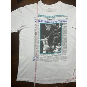 • Rare Vintage 1988 The Charlotte Observer NBA Hornets VS Bulls Newspaper Print Short Sleeve T-Shirt