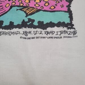 VINTAGE 1989 CHRISTIAN TSHIRT, GO AGAINST THE FLOW LIVING EPISTLES, MENS LARGE SINGLE STITCH USA MADE, 80S BIBLE VERSE GRAPHIC SHIRT, ROMANS 12:2 JOHN 2:15 CHRISTIAN FAITH TEE, VINTAGE JESUS TEE, CHRISTIAN 80S TSHIRT, USA MADE FAITH SHIRT, ONE WAY OUT TEE, RELIGIOUS GRAPHIC SHIRT