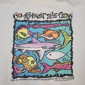 Vintage 1989 “Go Against The Flow” Christian Living Epistles T-shirt mens large single stitch USA made graphic faith tee shop now