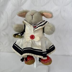 Ahoy there! Set sail with this charming vintage Hoppy VanderHare Sailor Rabbit Muffy from 1990! This delightful plush toy comes complete with its own map, ready for adventure. Please note that the clothes have some dirt, so be sure to check out all the pictures for a detailed look. This Muffy is ready to bring joy to your collection or become a treasured friend for someone special.