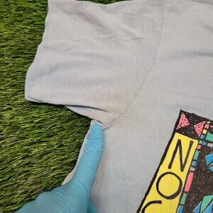 VTG 1990 Nocturnal Beach Club T-Shirt Mens M Single Stitch USA Made Surf Skate Palm Trees Tribal Pattern Neon Colors 50/50 Cotton Poly Blend Paper Thin Soft Boxy Tee Anderson Copyright Sun Sportswear Inc