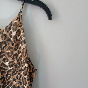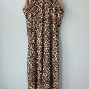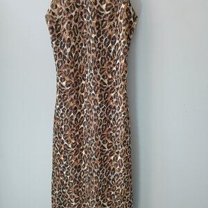 VTG 1990s Hampton Nites Sz 12 Cheetah Print Chiffon Cocktail Maxi Dress Lined