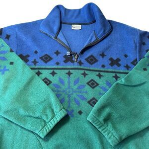 VTG 1990's Men's Cheetah Winter Snowflake Fleece 1/4 Zip Sweater, Large