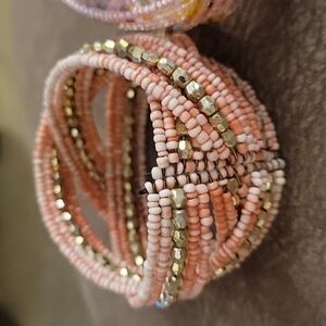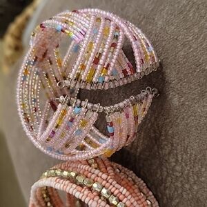 VTG 1990s Pink Braid Beaded Chunky Cuff Bracelets