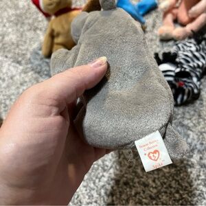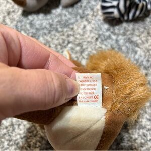 This product is a lot of 6 vintage Ty Beanie Babies plush stuffed animals from the 1990s. The variety includes animals such as a bear and rhino, making it a fun and collectible set for children aged 3 and up. Made in China, these Beanie Babies are part of the original line that has since retired, adding to their appeal for collectors of all ages. With a mix of different animals and nostalgic charm, this lot would make a great addition to any collection or a perfect gift for fans of retro toys.