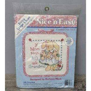 For sale is this VTG 1991 Dimensions Nice n Easy Counted Cross Stitch Ask Grandma Barbara Mock Finished size 6" x 6" Pre-Owned. Beautiful counted cross stitch kit ready for your next project! The package has been opened, but all materials are complete. Everything you need is here--just waiting to be stitched! Please view all photos closely for the condition. Comes from a Smoke-Free Shop.