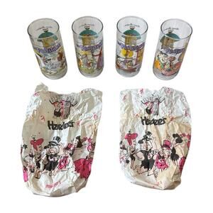 VTG 1991 The Flintstones Hardees Glasses + 2 Original Bags 30 Years Complete Set