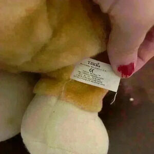 There is some wear on the ears and one front paw is missing the thread. Pictures provided.