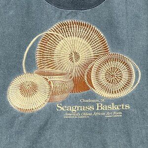 Vintage 1992 Charleston South Carolina Seagrass Baskets African Green T-Shirt in XL size. Features a 22" pit to pit and 28" length dimension.