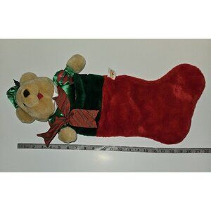 Vintage Plush Teddy Bear Christmas Stocking