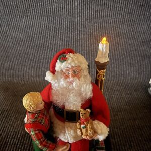 VTG 1993 Holiday Creations Santa Claus Boy Bear Lighted Candle Musical Works