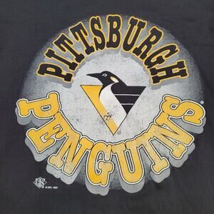 VINTAGE 1993 PITTSBURGH PENGUINS TSHIRT, NHL 90S BOX FIT HOCKEY TEE, 90S PENGUINS STRIPED SLEEVE SHIRT, MADE IN USA HOCKEY GRAPHIC TEE, RETRO NHL TEAM SHIRT MENS MEDIUM, VINTAGE TEE, NHL SHIRT, PITTSBURGH TSHIRT, 90S STYLE, SPORTSWEAR