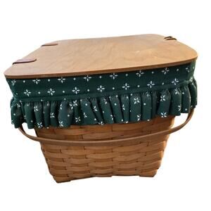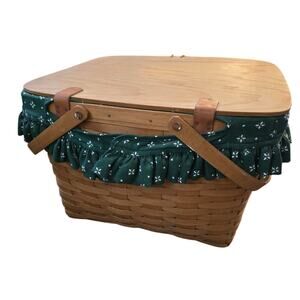 VTG 1996 Longaberger Picnic Basket w/riser Leather Hinges and Wood Latch. EUC