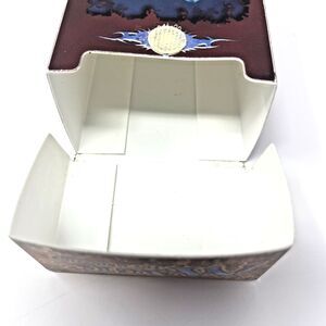 Vintage 1997 UltraPro Magic the Gathering 5th Edition Plastic Deckbox features Jester's Cap on the front and Force of Nature on the back. Hook and look closure inside the box shows some age/yellowing. There is a small scratch on the bottom of the box.