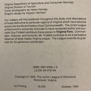 Virginia Fare" is a cookbook published by the Junior League of Richmond.