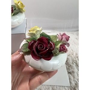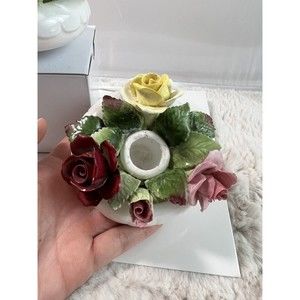 VTG 2 Golden Crown E&R England Fine Bone China Hand Painted Rose Candle Holders.