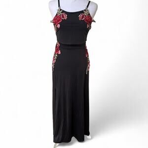 VTG. 2 PC. SKIRT CROP TOP BLACK GOTH EMBROIDERED ROSES SET SMALL.