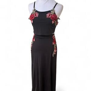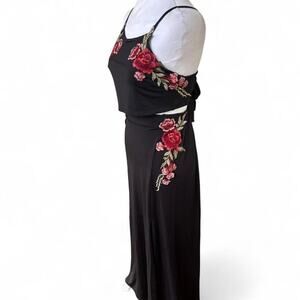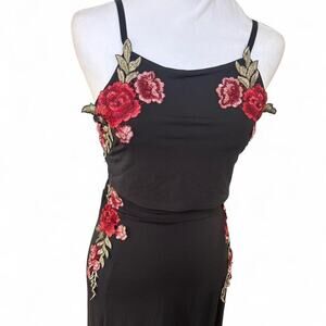 SMALL. THIS IS SOOO CUTE! TWO PIECES, POLYESTER, MIDI SKIRT WITH MATCHING TIE BACK EMBROIDERED ROSES FLORAL CROP TOP.