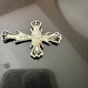 VTG 2" Pewter Cross Christianity w Amethyst Stone Marked CCI 7210 No chain