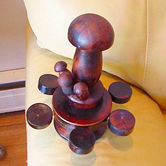 This vintage, hand-carved wooden 2 piece Folk Art sculpture is a unique addition to any home décor or mushroom collection.
