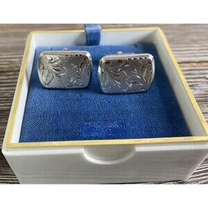 VTG 20+ GRAMS Signed Sterling Silver Etched Leaf Swirl 1950’s Men’s Cufflinks