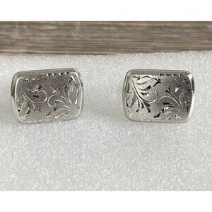 VTG 20+ GRAMS Signed Sterling Silver Etched Leaf Swirl 1950s Mens Cufflinks