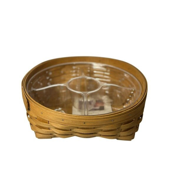 Longaberger basket, round Longaberger, 2001 Longaberger, divided basket, Longaberger organizer, snack serving basket, vintage Longaberger, woven maple basket, Longaberger protector, collectible basket