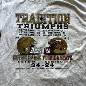 VTG 2002 Notre Dame Football Traditions Triumphs Shirt ACC Grey Mens Sz L NCAA