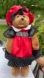 Adorable teddy bear in a red and black dress with polka dot accents. Perfect for gifting or collecting.