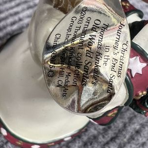 Add a touch of holiday charm to your tree with this set of three vintage 2003 Thomas Kinkade Old World Santas Christmas Heirloom Ornaments. Made of resin and ceramic, these small-sized ornaments feature Santa Claus in a variety of poses and colors, perfect for any holiday decor. Hang them up using the included hanging feature for a festive and decorative touch.