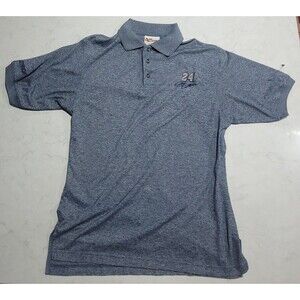Show off your passion for NASCAR and Jeff Gordon with this Chase Authentics golf polo shirt. The shirt features the iconic #24 and Dupont Racing logos on a gray and blue background. The medium-sized shirt is made in China and is perfect for any fan looking to add to their collection of NASCAR merchandise. The shirt is brand new and has never been worn, making it a great addition to any wardrobe. Whether you're on the golf course or watching the race, this shirt is sure to turn heads.