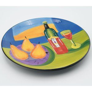 VTG 2004 Mary Naylor Designs Handpainted Wall Decor Round Art Plate Wine Fruit