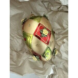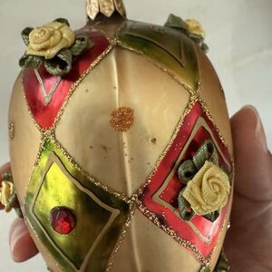 VTG 2004 Waterford Harlequin Rose Egg 5" Glass Ornament Gold Red. One area with some spots and the glitter is discolored. Please see pictures.