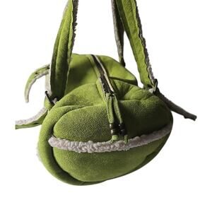 VTG 2004 Y2K Green Faux Suede Sherpa Lined Bucket Shoulder Bag Purse Preppy Prep