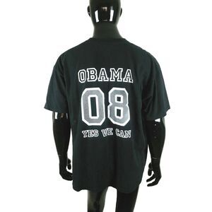Barack Obama "It's time for change" on front "Obama, yes we can" on back black t-shirt men's size 2XL