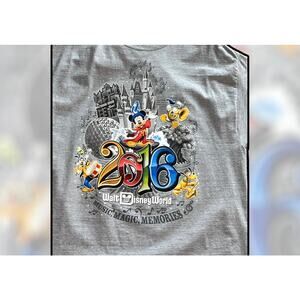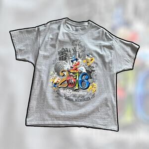 VTG 2016 Disney Parks TEE SHIRT XLG Gray Hanes 100% Cotton T-Shirt Short Sleeve