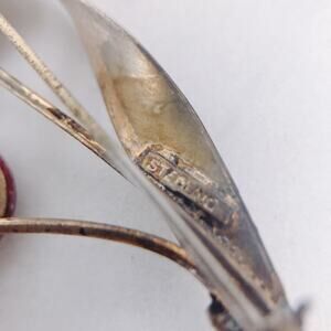 VTG 20s-30s Sterling Silver Floral Brooch Purple Glass Stones Nouveau Influence