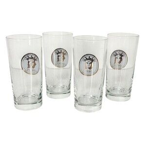 VTG 22Kt Gold Statue of Liberty Centennial Gold Seal Set of Four Libbey Glasses