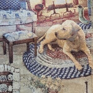 VTG 27x27 Tapestry Fabric Sample LaCrosse Furniture Co Country Home w dogs