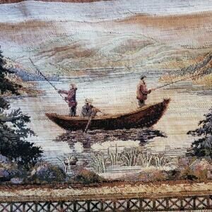 VTG 27x27 Tapestry Fabric Sample LaCrosse Furniture Co Country Hunting Fishing L