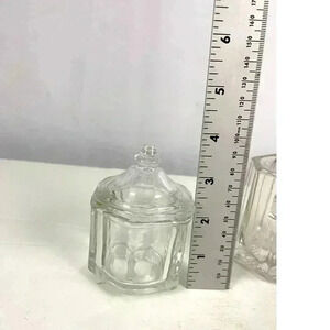 VTG 3 Pc Clear Glass Cup Small Pitcher Jar with Lid Avon Crystal