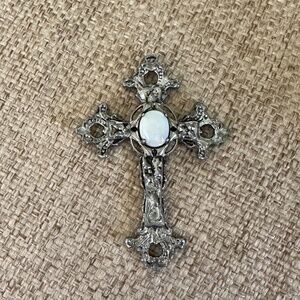 VTG 3" Pewter & Opal Cross Christianity Gorgeous Old No Chain Beautiful Work!