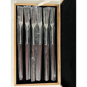 VTG 3 Prong Long Fork box set of 6 stainless steel w/ wood handle