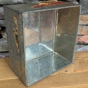 Square tin box with lid.