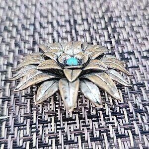 This vintage brooch is a beautiful piece of 30s-40s era jewelry made in Austria. Featuring a bouquet shape with blue rhinestones and a silvertone metal base, this handmade piece exudes beauty and artistry. The pin is signed and has a prong setting style, adding to its charm. Perfect for women who appreciate unique and elegant vintage accessories, this brooch is a lovely addition to any jewelry collection.