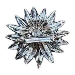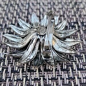 VTG 30s Made in Austria Blue Rhinestone 3D Flower Silvertone Metal Pin Brooch