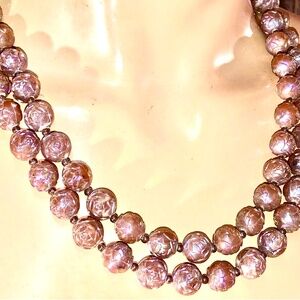 VTG 30s/40s Root Beer Flower Molded Plastic Dbl Strand Beaded Necklace Austria