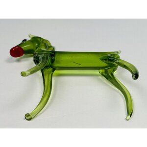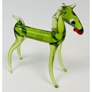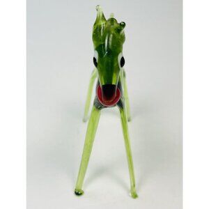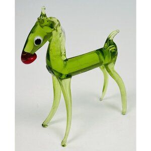 VTG 3.25" Handblown Green Glass Horse Figurine White Mane Red Tongue Delicate