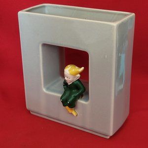 VTG 3D Pixie Elf Wall Pocket Planter Vase Open Square