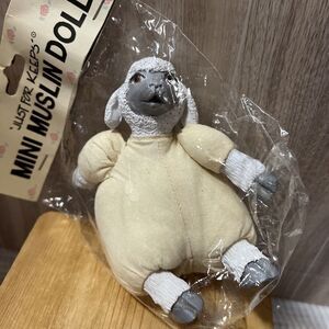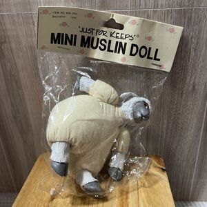 The product is a vintage 4-inch mini muslin sheep doll by Just For Keeps. It is made of polyester material and is designed as a doll. The doll is small in size, measuring 4 inches in width. It is a new item and is likely intended for doll making or repair projects.